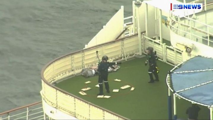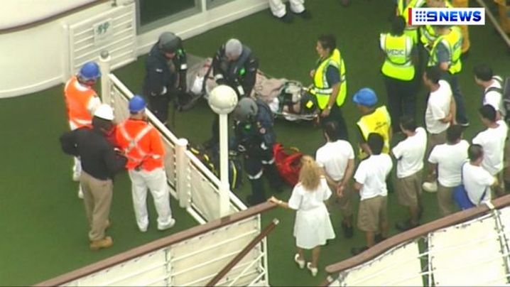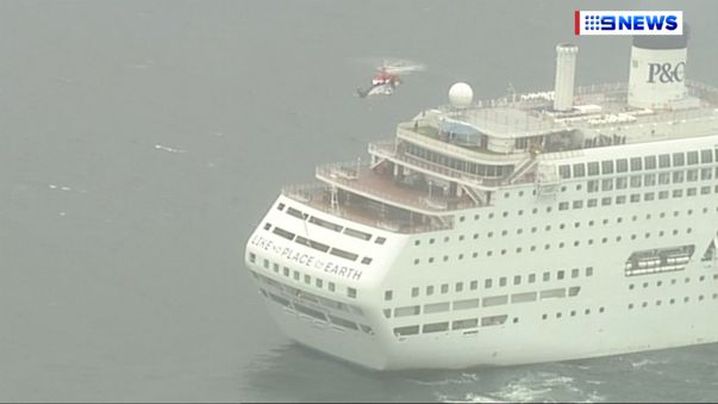 A woman who fell and hurt her hip had to be winched off a P&O cruise ship in Queensland’s Moreton Bay this morning.